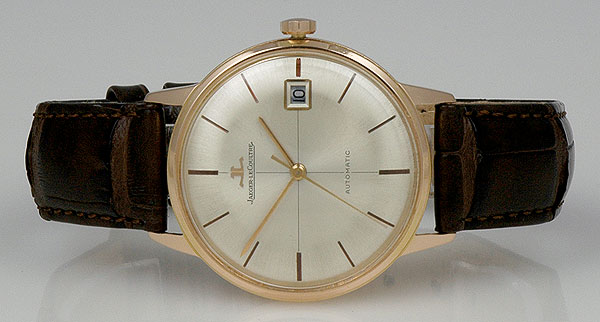 Very attractive and original silver 'cross hair' dial is in excellent condition and has pink gold 'baton' style hour markers with matching hands & JL logo at 12 o'clock. Dial is signed 'Jaeger LeCoultre, Automatic' with 'Swiss Made' at 6 o'clock.