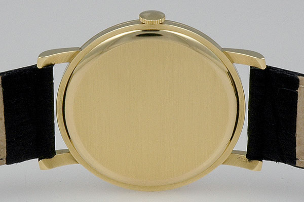 Solid 18ct gold case is in beautiful NOS (new/old stock) condition and is flawless with no marks, dents, dings scratches or imperfections. Fully hallmarked inside (Swiss) for 18ct. Original winding crown.