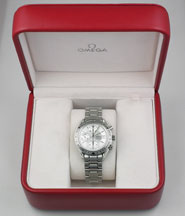 Gentlemen's Omega Speedmaster Chronograph with date in virtually, un-worn condition. Complete with all original boxes, manuals and warranty cards from new. Originally purchased in 2004 from Beaverbrooks in the UK. Almost a brand new watch.