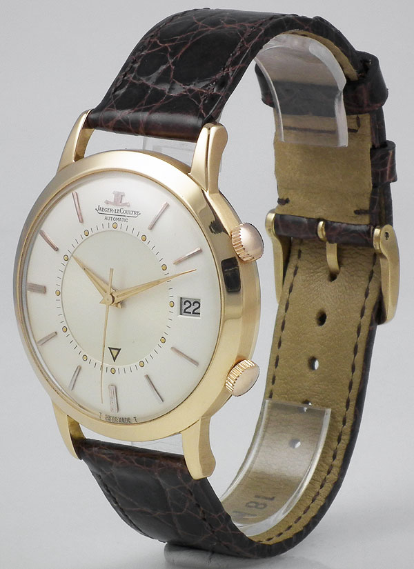 Gentlemen's 18ct gold Jaeger LeCoultre Memovox in lovely, original condition with mechanical alarm in perfect working order - sounding loud and crisp. This is the much rarer large or jumbo sized version of the Memovox and is an automatic rather than manual and also has the added benefit of having a date function.