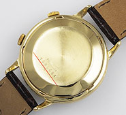 Large-size, heavy 18K fully hallmarked gold case is in beautiful condition. Very rare to find these in full gold rather than gold-filled or gold-capped. A really nice looking vintage piece that doesn't come up small on the wrist as so many vintage gold watches do.