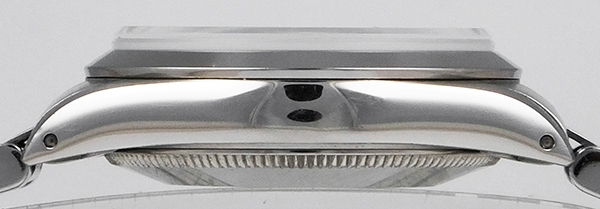 Stainless steel case in very fine condition with smooth stainless steel bezel and screw down 'Twinlock' winding crown. Rear cover also in excellent condition with no damage to toothed edge. Case reference: 67480. Serial: 8375***.