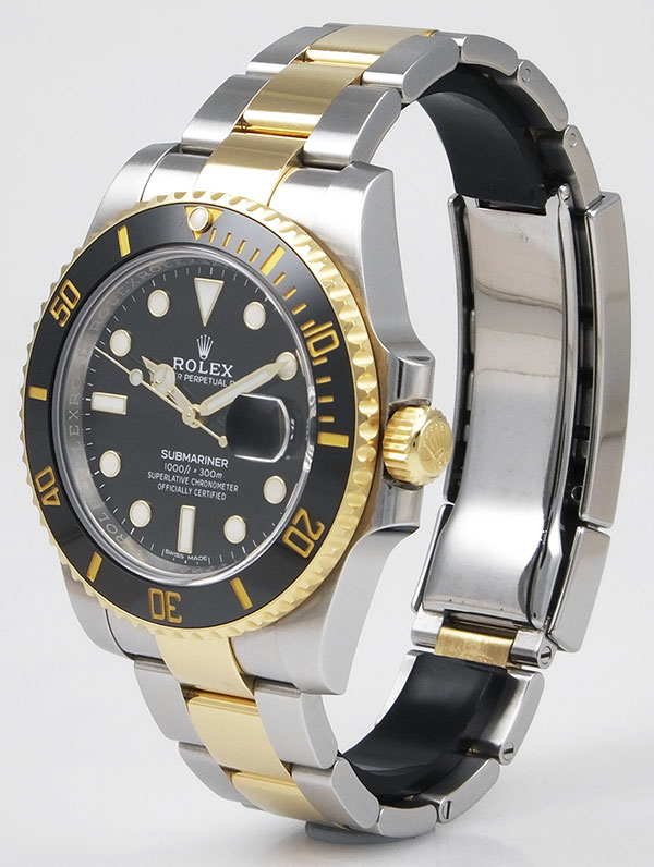 Stainless steel & 18K yellow gold case is in near mint condition showing very little signs of wear; no obvious scratches or marks, just a few light handling marks from careful use. Bezel and ceramic (Cerachrom) bezel insert are in perfect condition. A very well looked after watch. Original factory finish - case has had no polishing or refinishing. We feel you would struggle to find a better example of this model other than a brand new watch. Serial number: Q27D8xxx. Case ref: 116613LN.