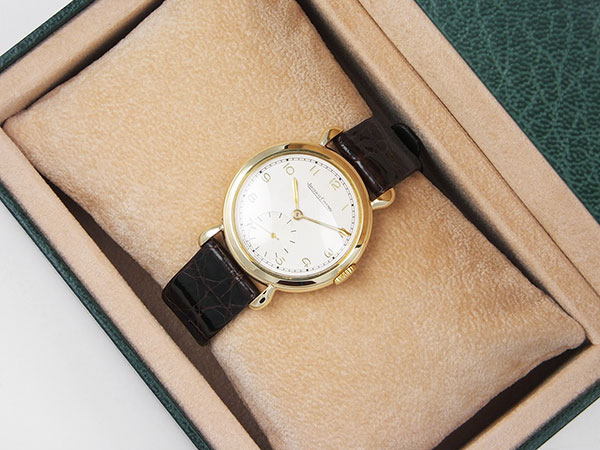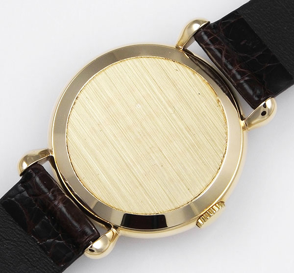 We have fitted a new dark brown Hirsch 'Prestige' (Louisiana Alligator) strap to the watch with complementing gold-filled buckle.