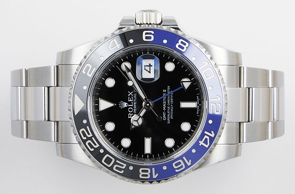 Gorgeous glossy black dial with date window at 3 o'clock. Dial is signed "Rolex Oyster Perpetual Date, GMT Master II, Superlative Chronometer Officially Certified" with "Swiss Made" at 6 o'clock. Original c