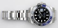 Excellent condition stainless steel GMT Master II Blue/Black so-called 'Batman'. This is the previous model with 'Oyster' bracelet as opposed to the current model which is only available with 'Jubilee' bracelet. Both models are two of the most desirable watches in the world!