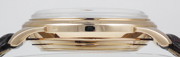 Solid 18K pink gold case is in flawless condition with sunken/recessed winding crown. Case has a beautiful vintage lustre to the gold - it is very pink! an extremely elegant and classy timepiece on the wrist. Appears to have hardly been polished throughout its life as chamfered edges to bezel and rear of case are still present and crisp. Rear of case has reference number: 12783.