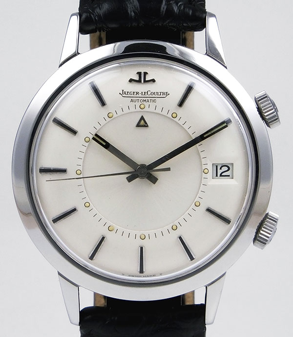 Stainless steel Jaeger LeCoultre Memovox in superb, original condition with mechanical alarm in perfect working order - sounding very crisp. This is considered a large or jumbo sized version of the Memovox and is an automatic with date function.