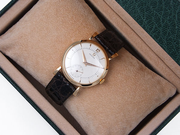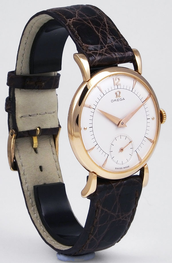 Very pretty 18K pink gold Omega, manual winding with sub-seconds dial and elegant lug & case design. A superb piece in beautiful condition.
